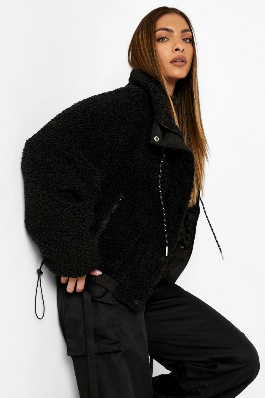 Feel sexy this season in this faux fur coat, made to look and feel as luxurious as animal fur without any animals harmed. This faux fur jacket is warm, cozy, and so on-trend, guaranteed to have you turning heads all season long. Whether you’re rocking your fave skinny jeans or a statement mini dress, this fur jacket has you covered (literally!). Wrap up snug with your faux fur fit, a chunky scarf, and a matching beanie for an outdo that wows.