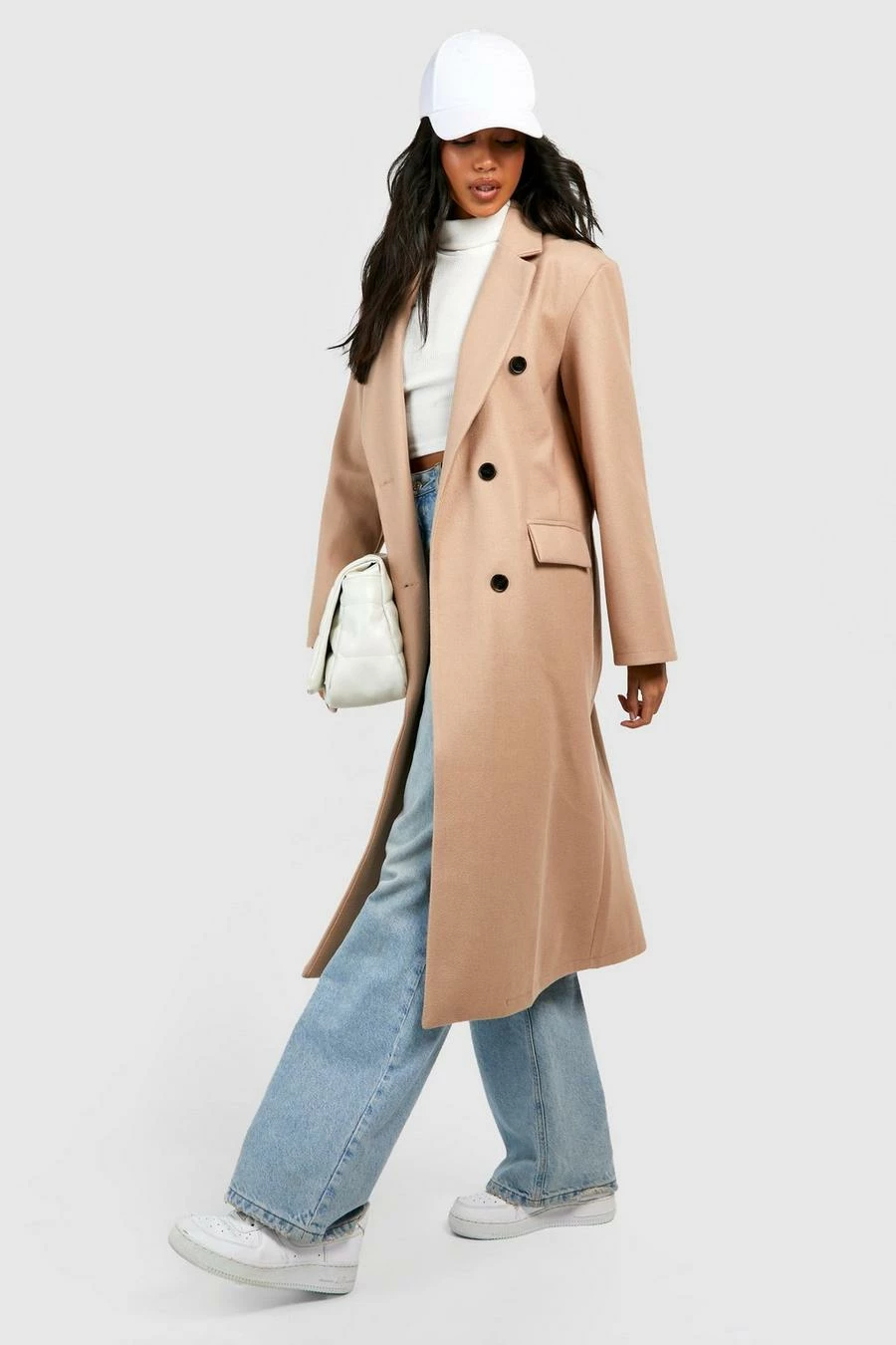 Get cozy this season in this wool coat, sporting a button-up front and shallow pockets; this piece is perfect for layering in colder months. The oversized collars and wide neck opening of this wool look coat are flattering on all bust sizes and can be worn for any occasion. Add sweatpants and a tank top for quickly running errands on cold days or mom jeans and a racerback bodysuit when you’re heading out for food with friends. This women’s wool coat will always have your back.