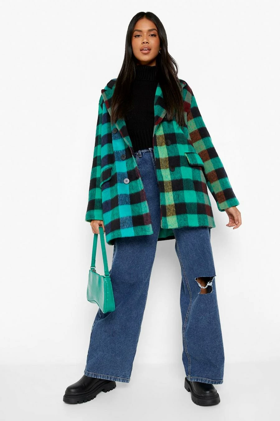 Get cozy this season in this wool coat, sporting a button-up front and shallow pockets; this piece is perfect for layering in colder months. The oversized collars and wide neck opening of this wool look coat are flattering on all bust sizes and can be worn for any occasion. Add sweatpants and a tank top for quickly running errands on cold days or mom jeans and a racerback bodysuit when you’re heading out for food with friends. This women’s wool coat will always have your back.